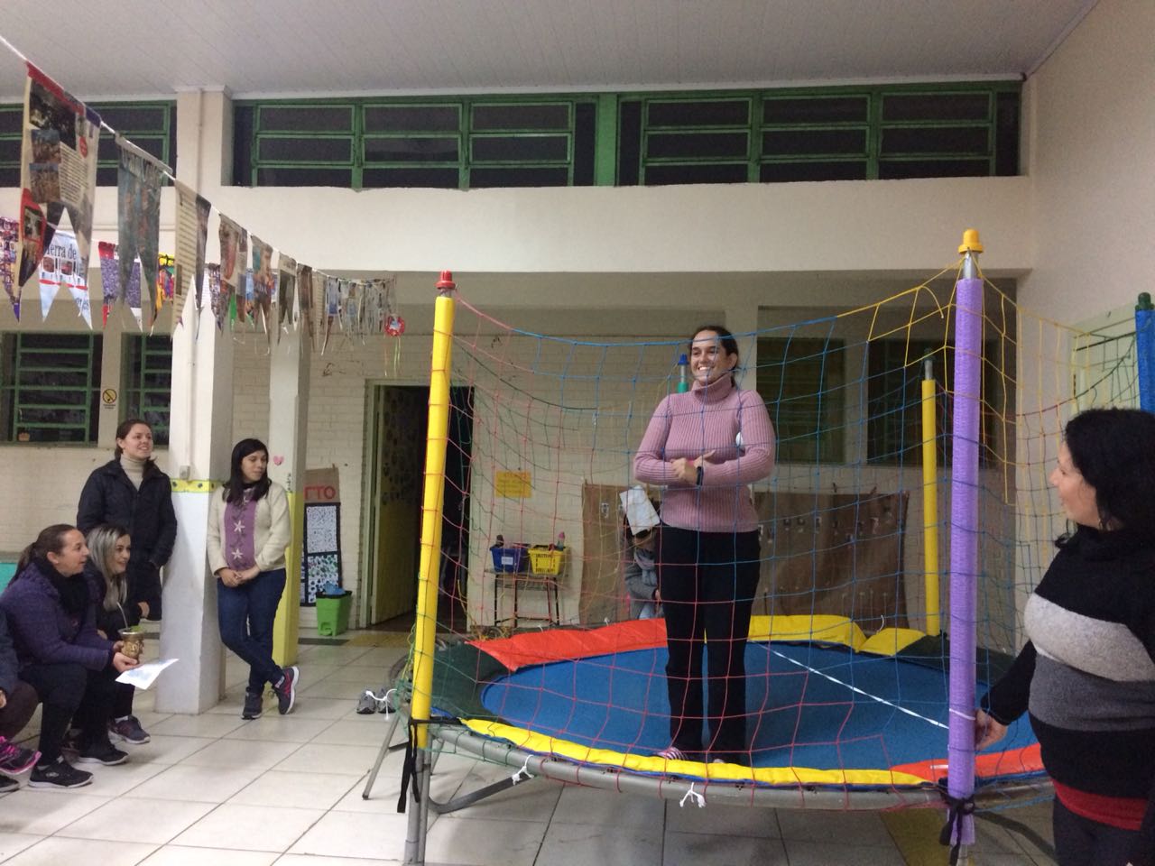 Nosso foco Pedagógico é rever os espaços e recursos pedagógicos que dispomos na escola e dar um nova utilidade para os mesmos. Neste mês tivemos um novo olhar para a cama elástica, um excelente recurso que temos para proporcionar aos nossos alunos as mais variadas atividades psicomotoras que contribuirão para o seu desenvolvimento pleno e integral. Um importante aliado para o nosso trabalho.